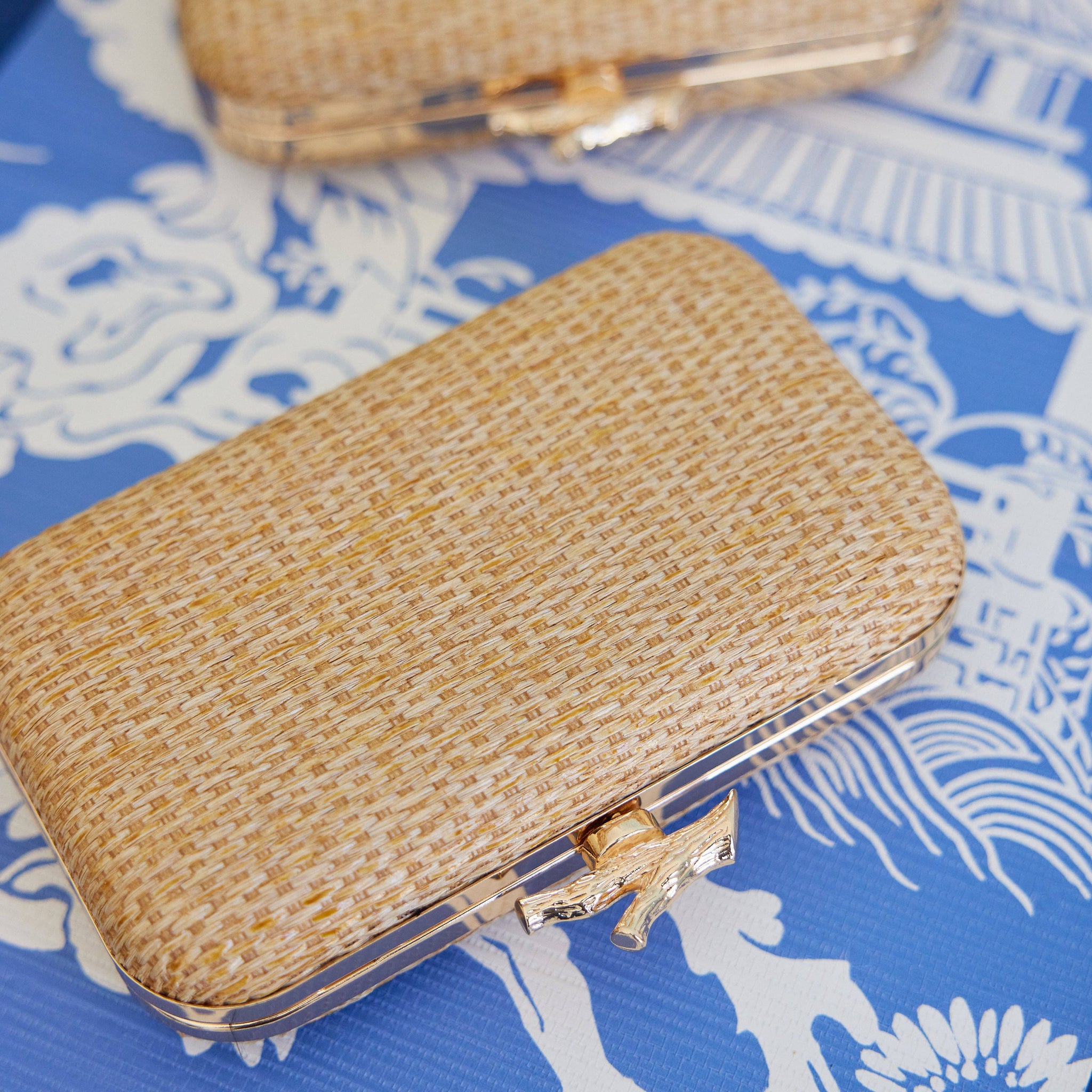 Elevate your summer style with our Coral Woven Clutch. Crafted with a woven straw design and an eye-catching coral clasp, this clutch exudes coastal vibes and is the perfect neutral accessory for any summer evening. Includes both long and short gold chain straps. * 7.5" x 5" x 2"
