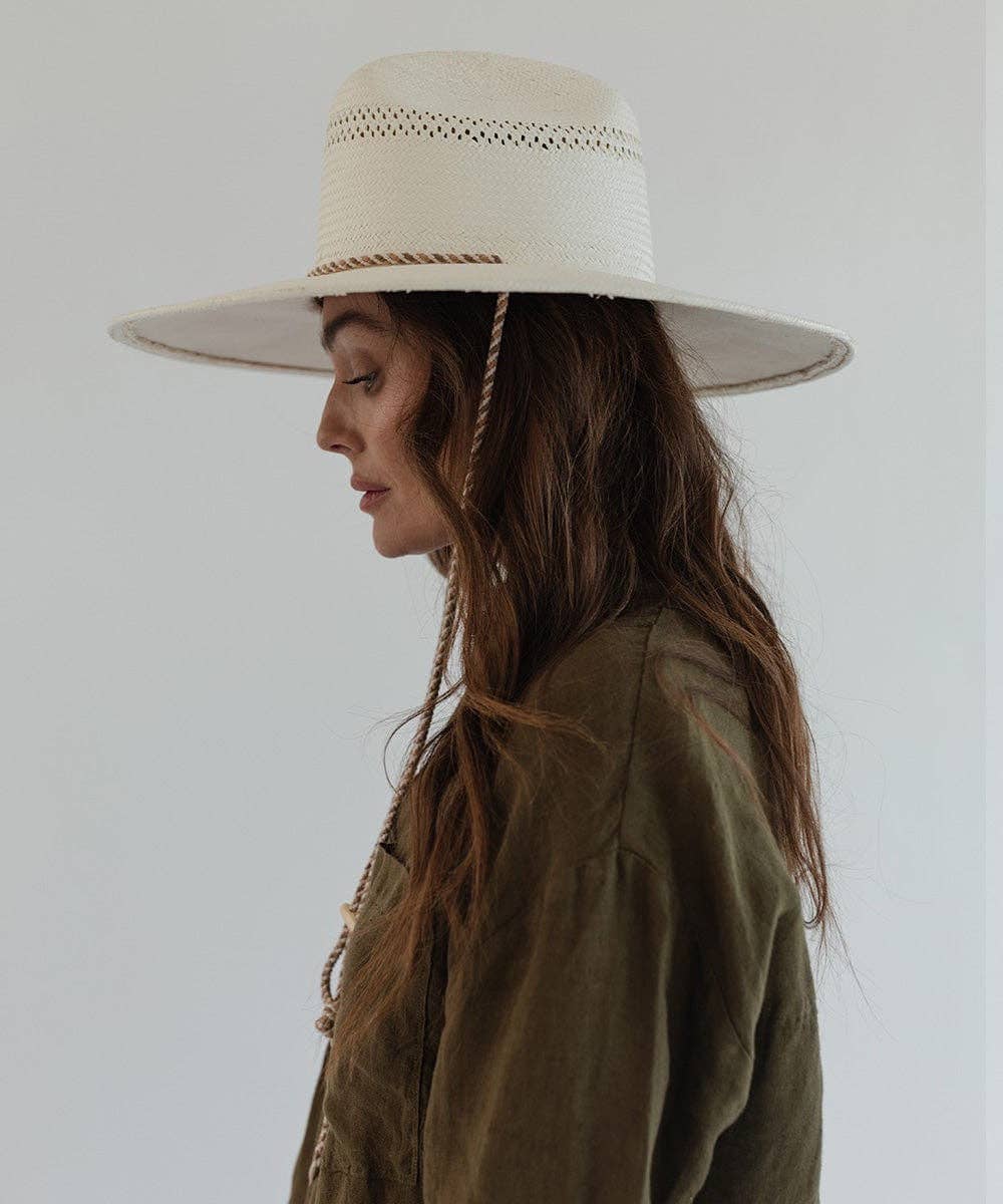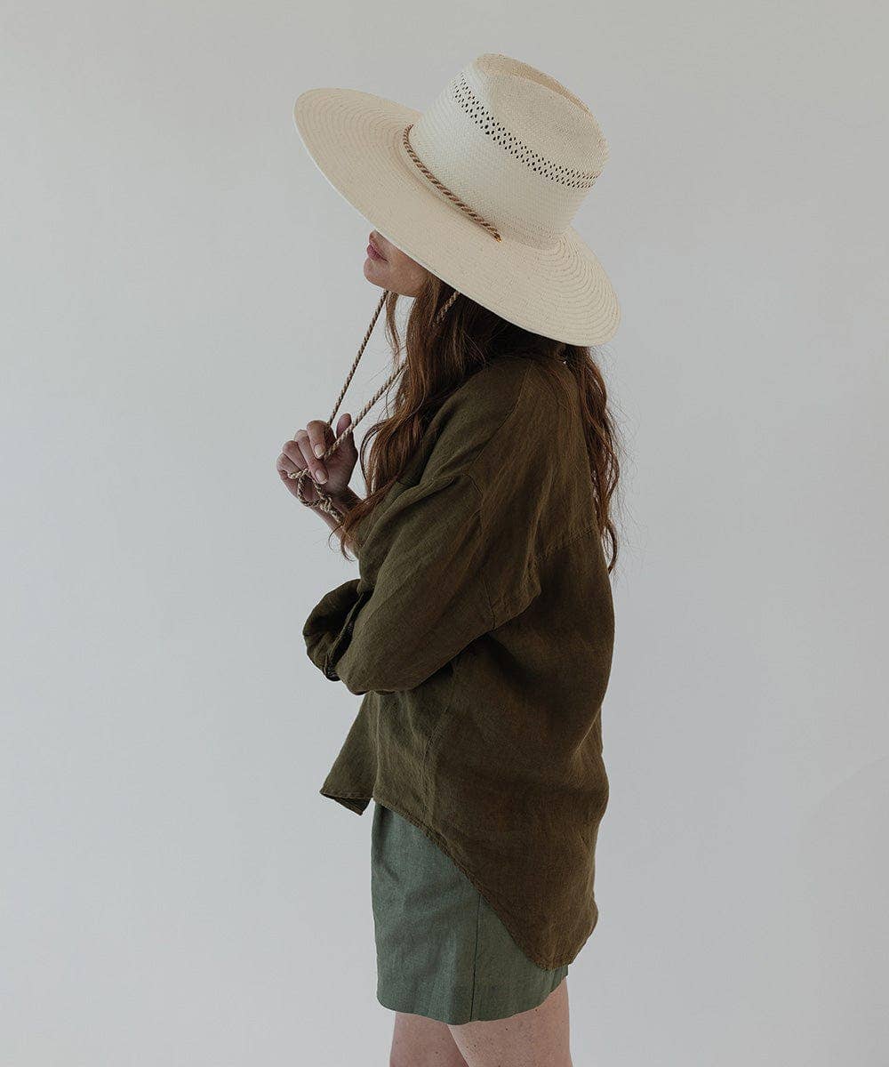 With an adjustable chinstrap and wide brim, the Opal is just the style you need to lounge by the pool this summer. The lifeguard crown + woven venting allows for additional circulation while wearing this lightweight, paper straw style. Size 57 - small/medium.